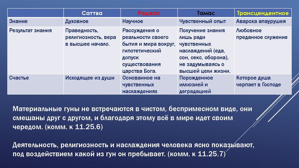 Материальные гуны не встречаются в чистом, беспримесном виде, они