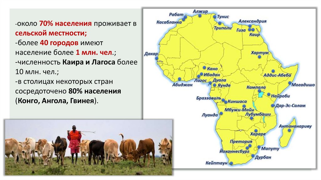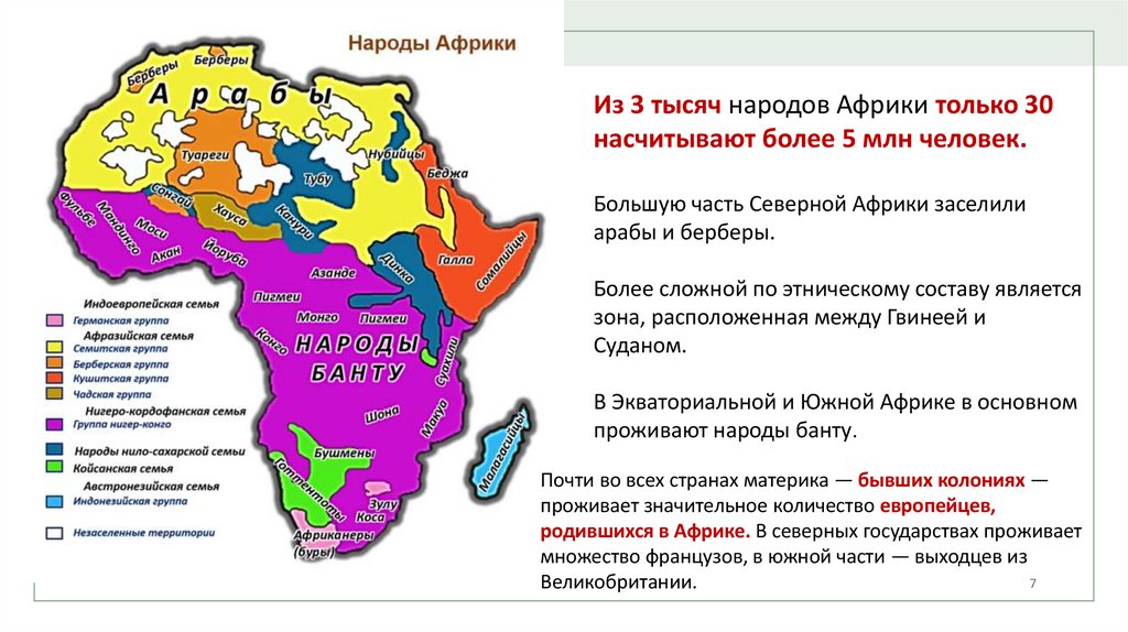 Из 3 тысяч народов Африки только 30насчитывают более 5 млн человек.
