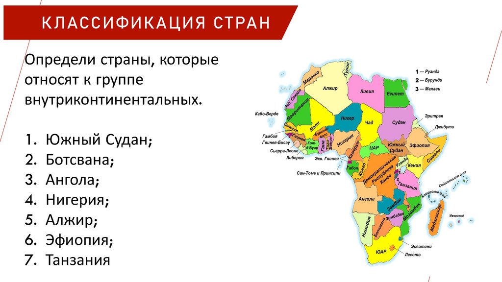КЛАССИФИКАЦИЯ СТ РАНОпредели страны, которые