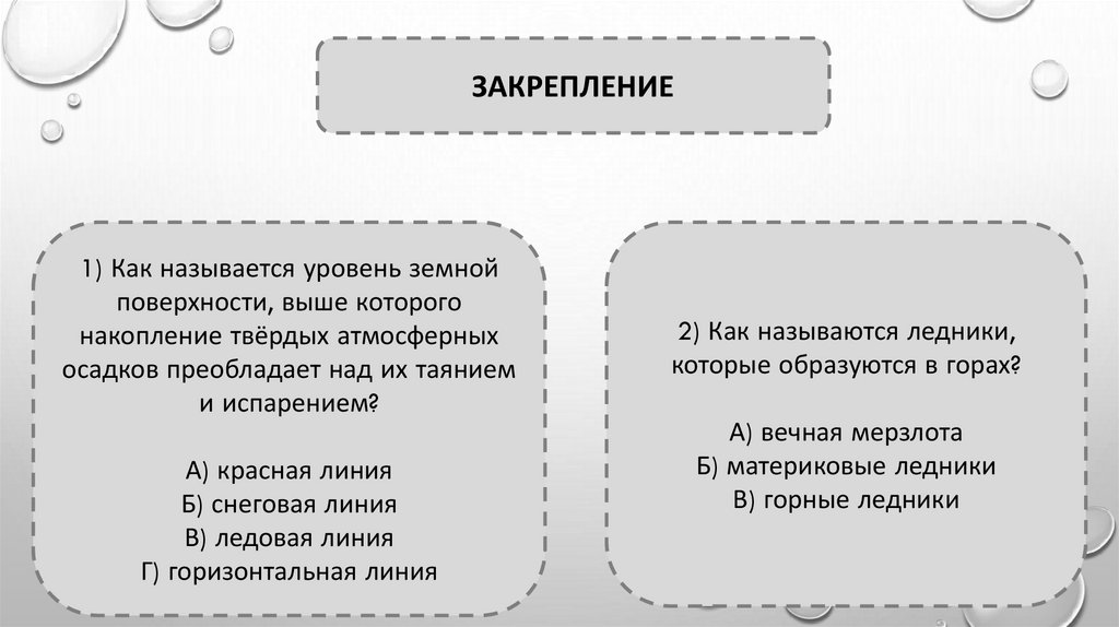 ЗАКРЕПЛЕНИЕ1) Как называется уровень земной