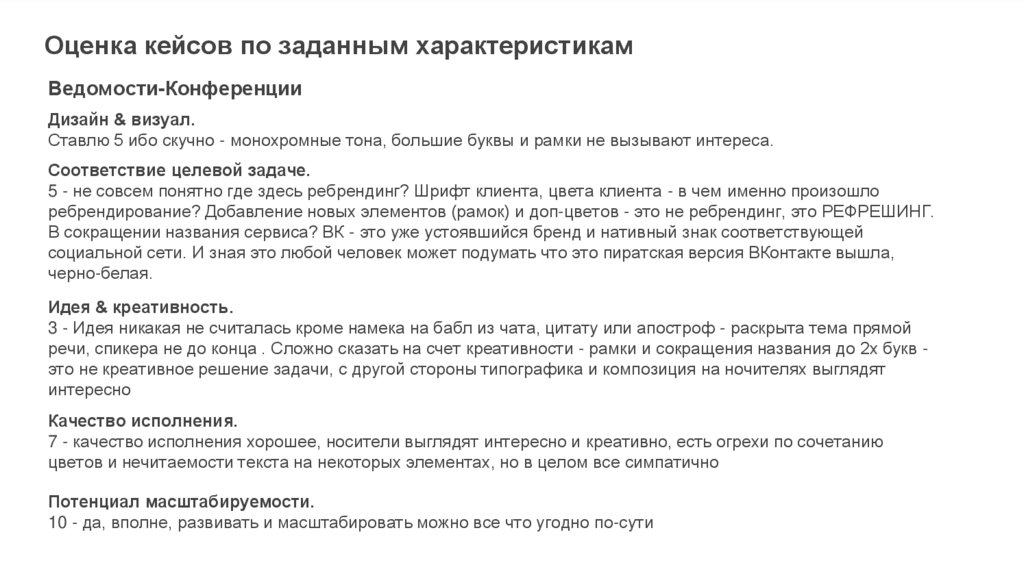 Оценка кейсов по заданным характеристикамВедомости-Конференции