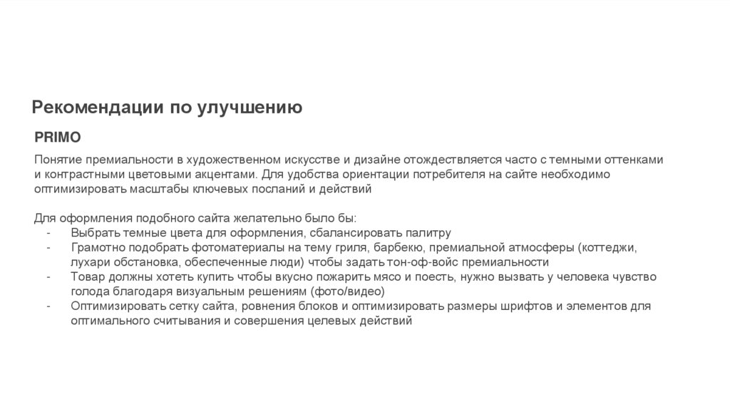Рекомендации по улучшениюPRIMO