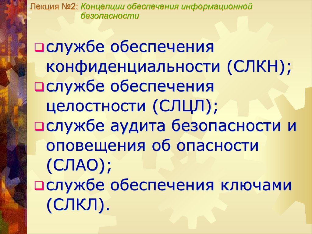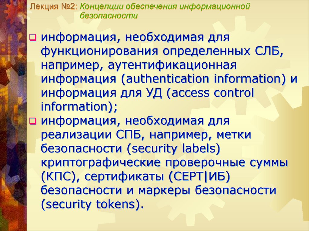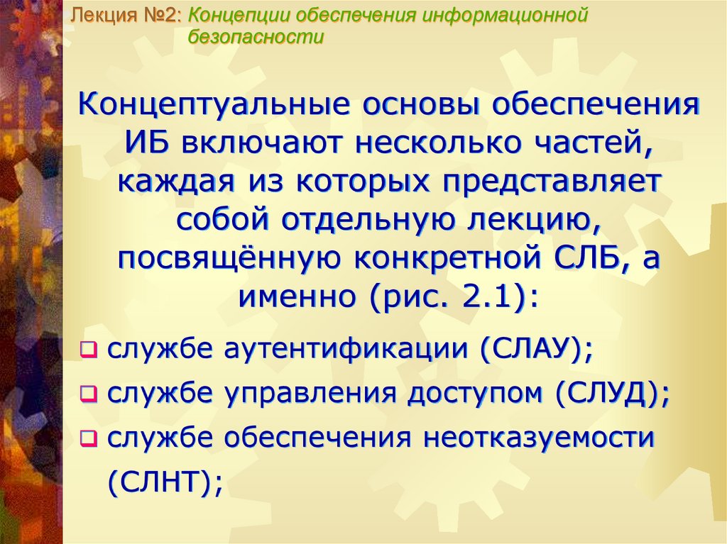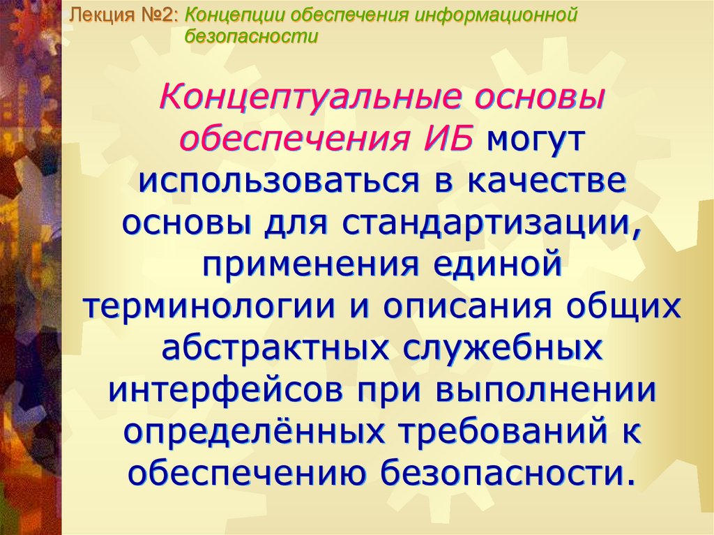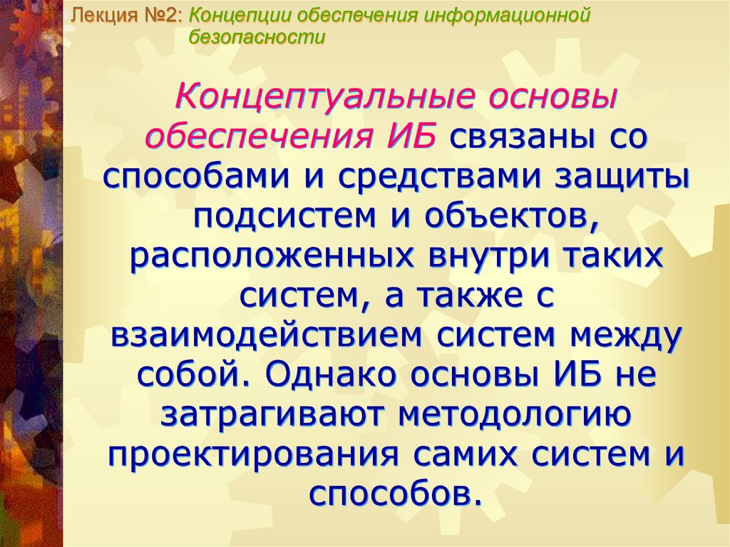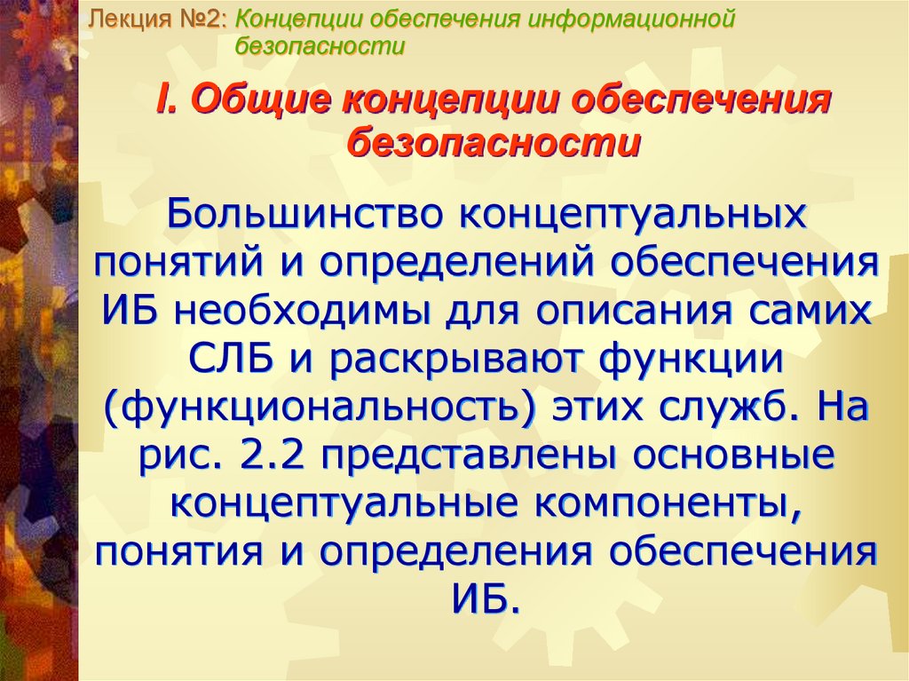 Лекция №2: Концепции обеспечения информационнойбезопасности