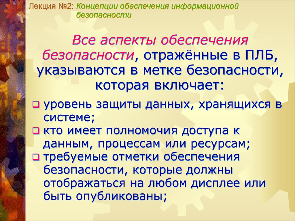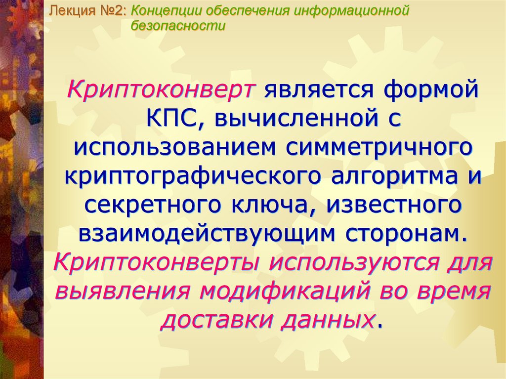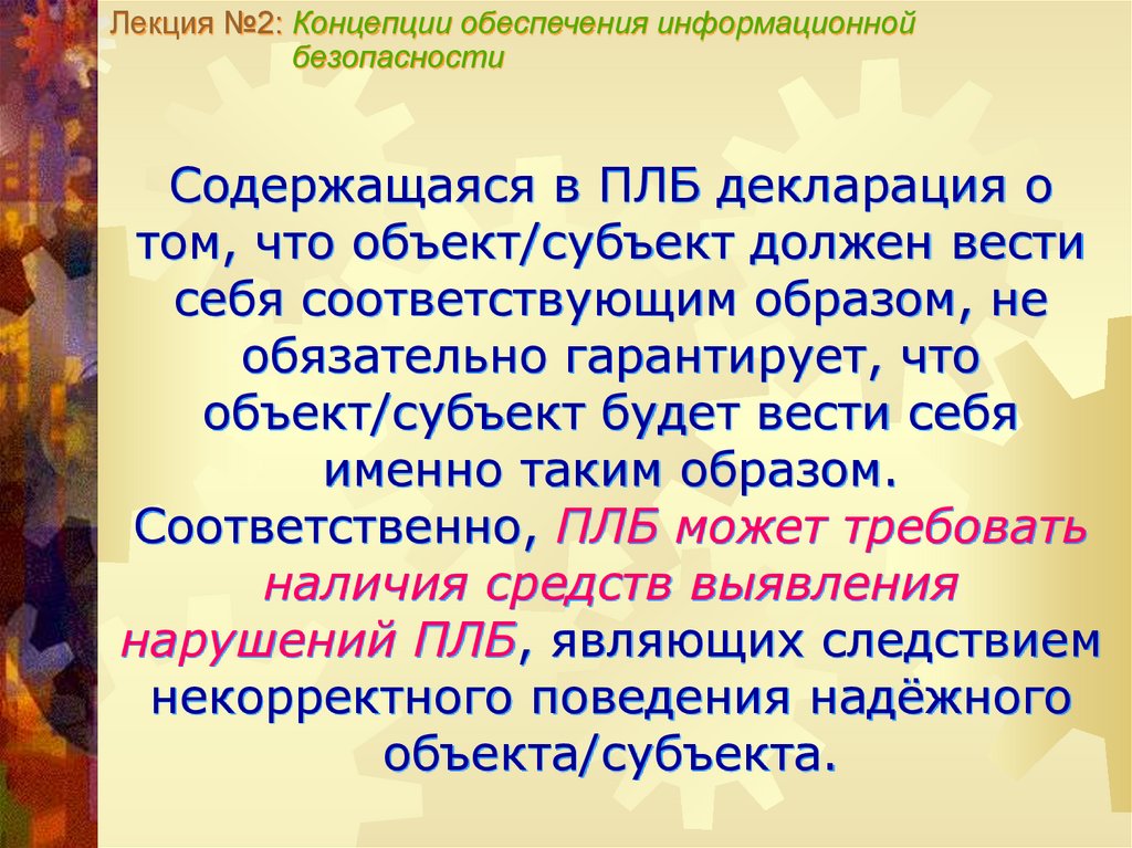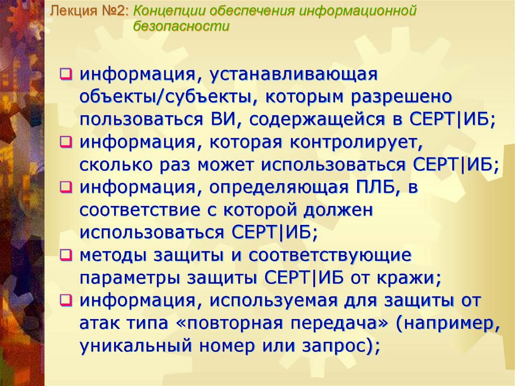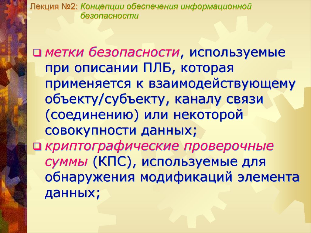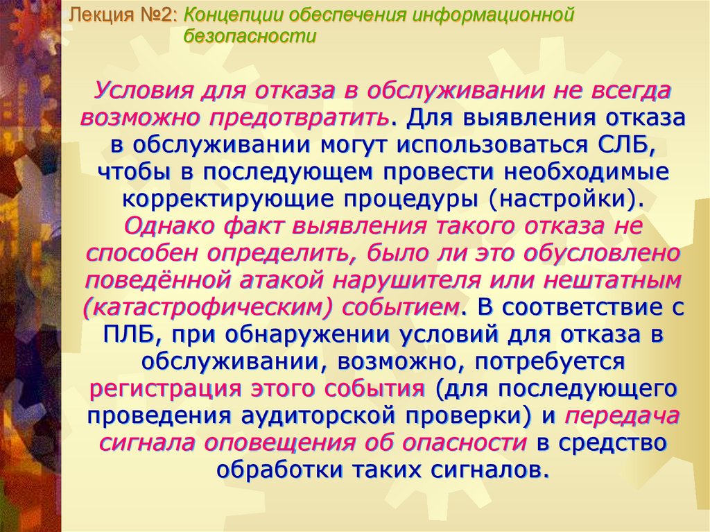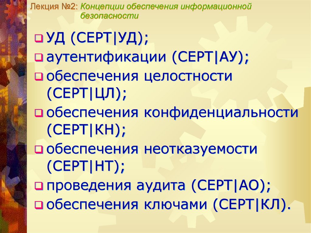 Лекция №2: Концепции обеспечения информационнойбезопасности