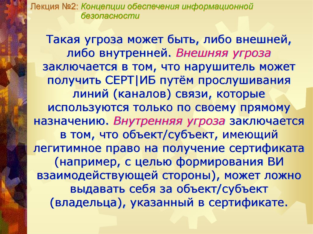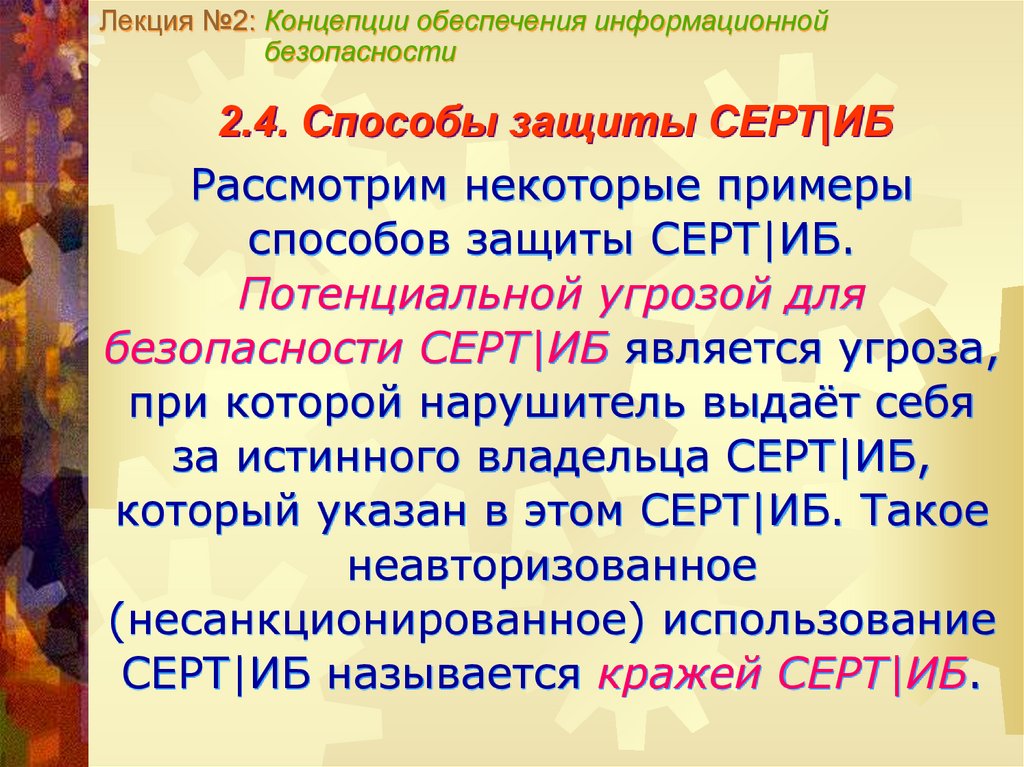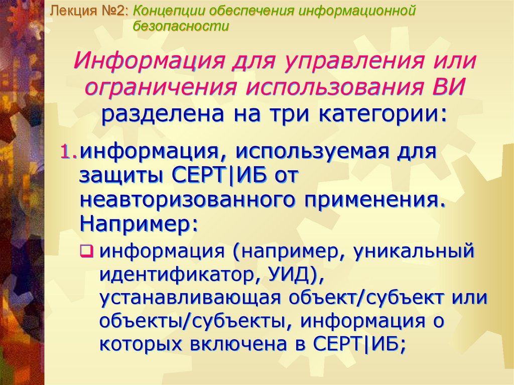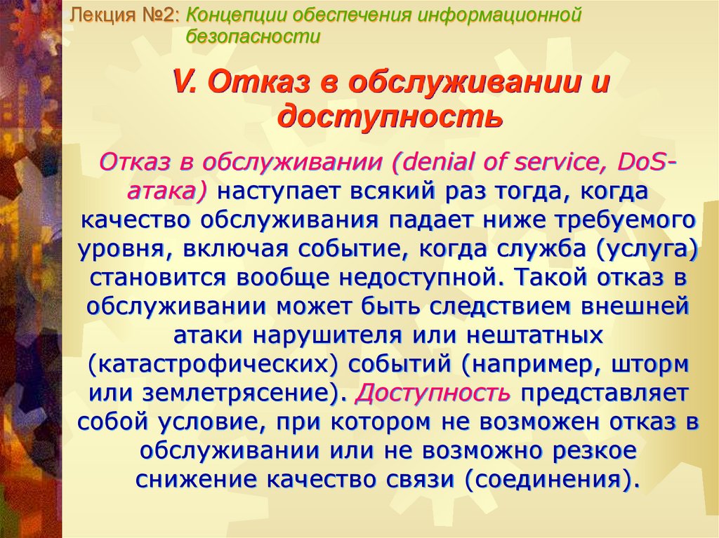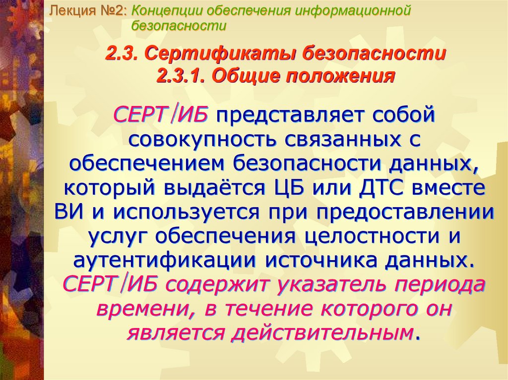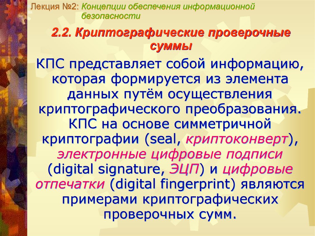 Лекция №2: Концепции обеспечения информационнойбезопасности