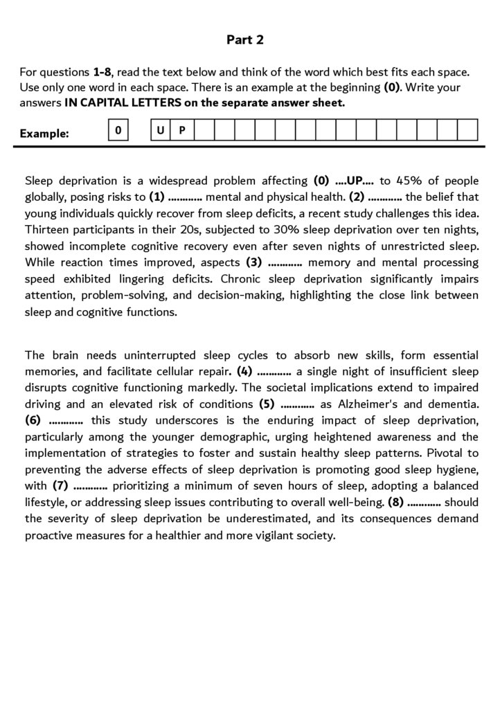 Part 2For questions 1-8, read the text below and think of the word which best fits each space.