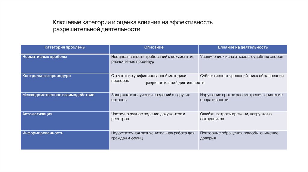 Ключевые категории и оценка влияния на эффективностьразрешительной деятельности