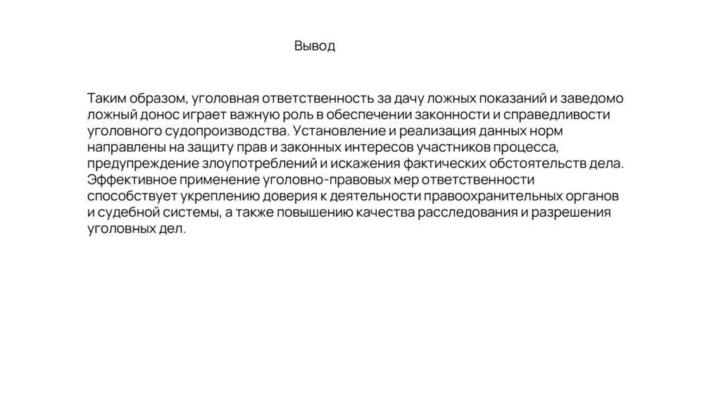 ВыводТаким образом, уголовная ответственность за дачу ложных показаний и заведомо