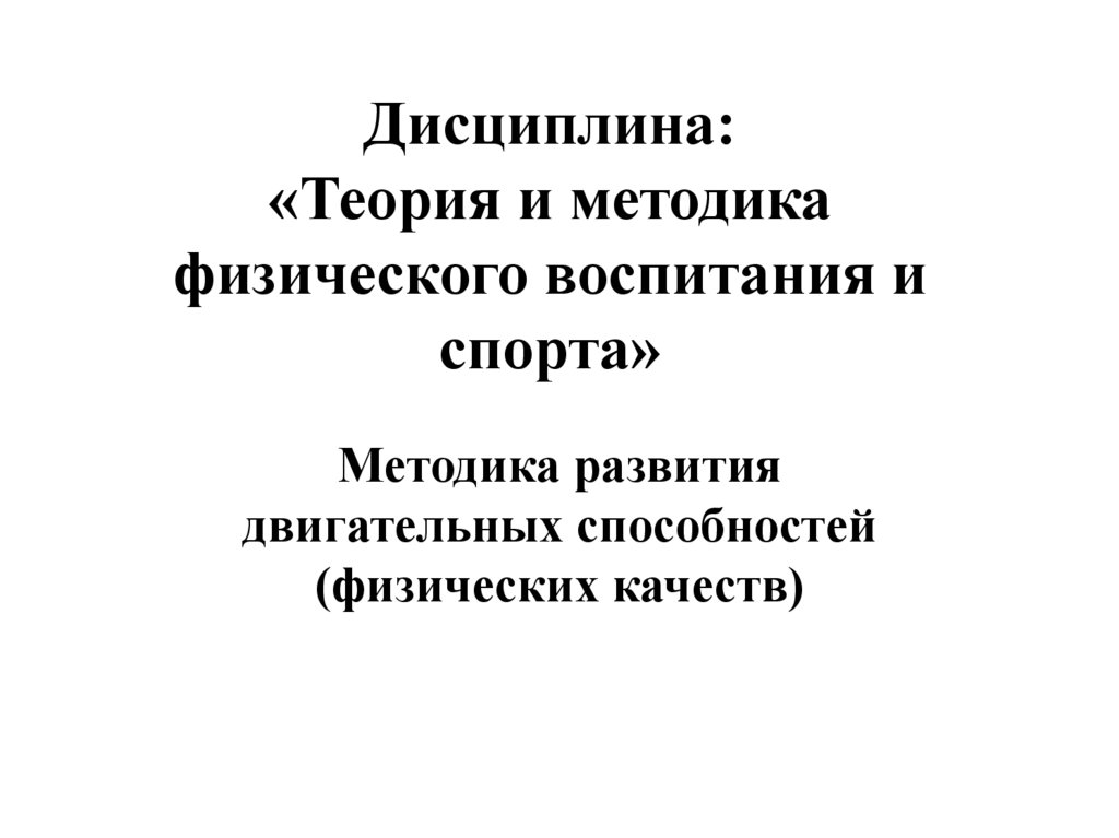 1. Дисциплина: «Теория и методика физического воспитания и спорта»