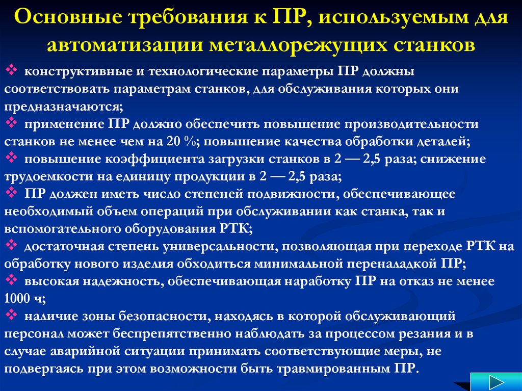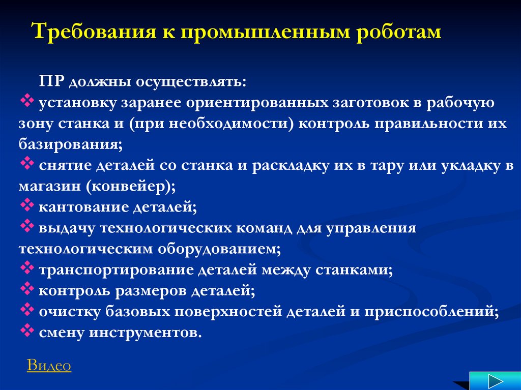 Требования к промышленным роботамПР должны осуществлять: