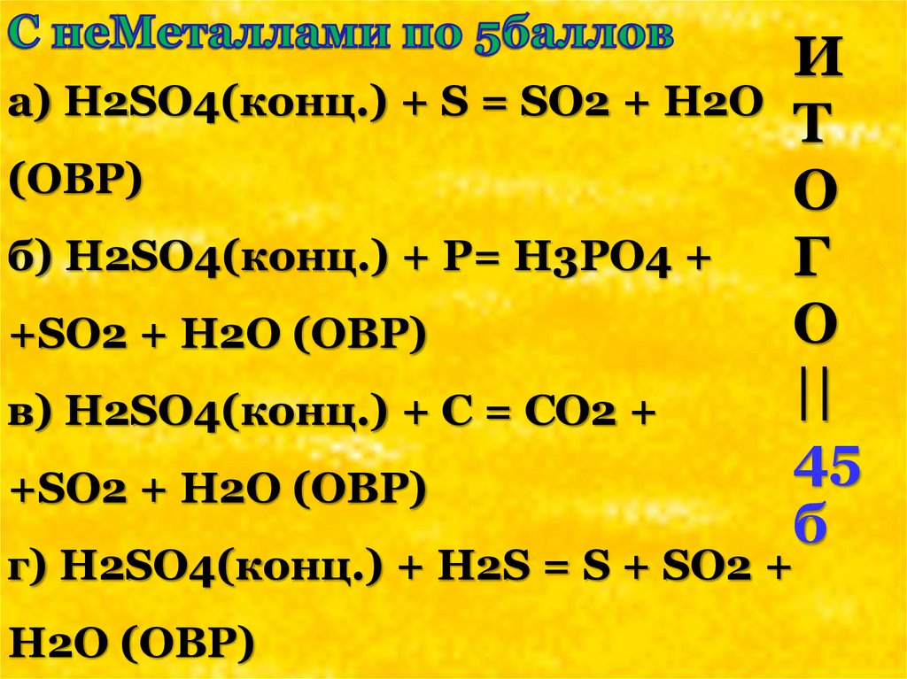 б) H2SO4(конц.) + Р= Н3РО4 +