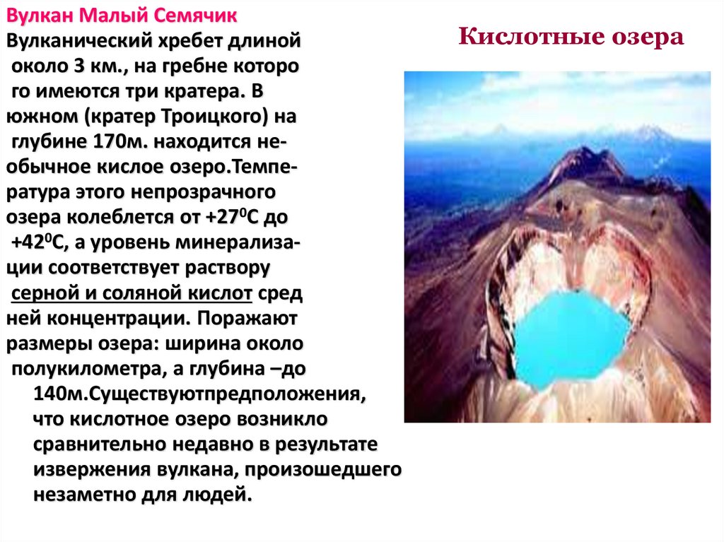 глубине 170м. находится необычное кислое озеро.Температура этого непрозрачного