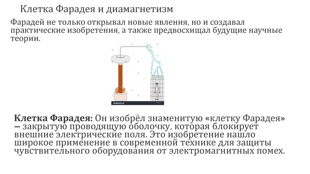 Клетка Фарадея и диамагнетизмФарадей не только открывал новые явления, но и создавал