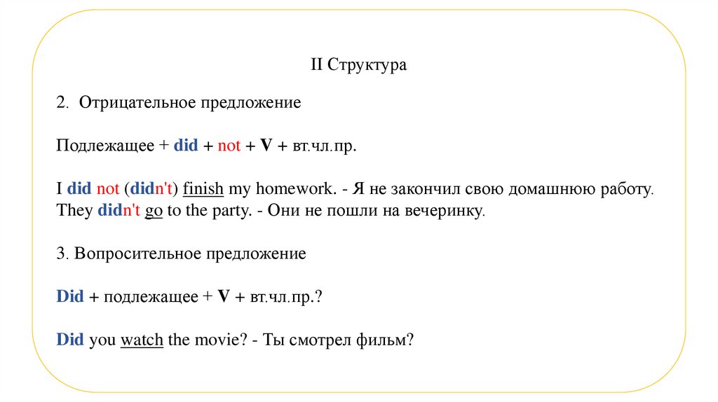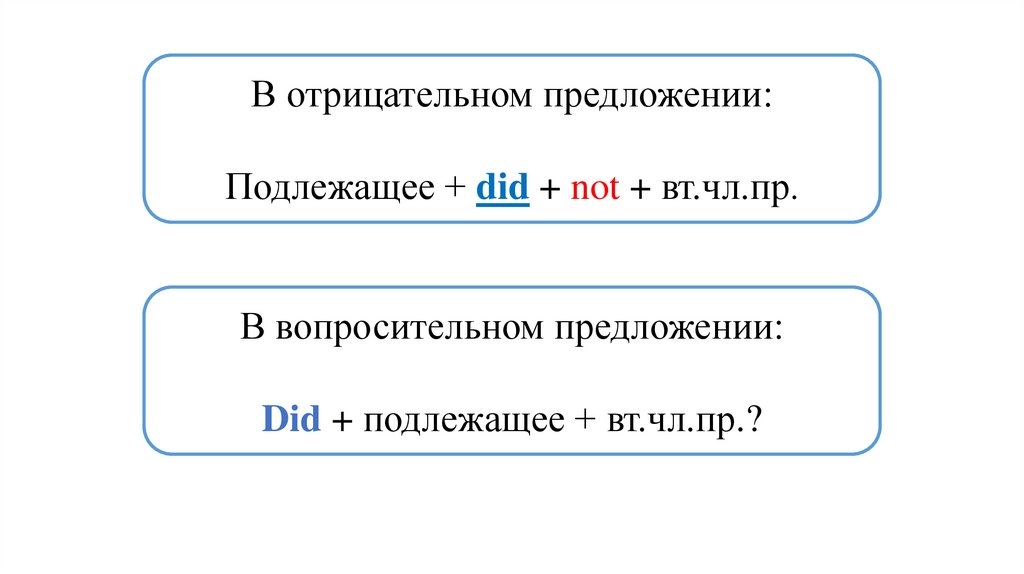 В отрицательном предложении:Подлежащее + did + not + вт.чл.пр.