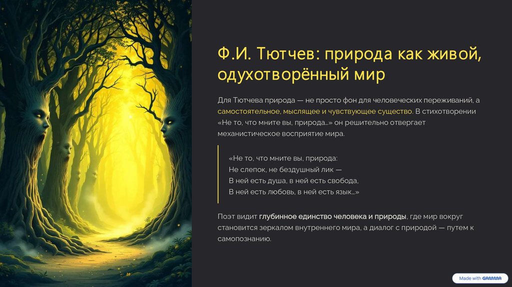 Ф .И. Тютчев : природа как живой,одухотворённый мир