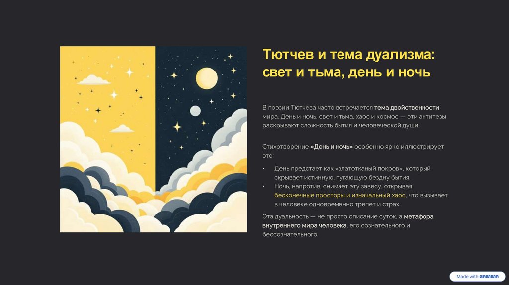 Тютчев и тема дуализма:свет и тьма, день и ночь