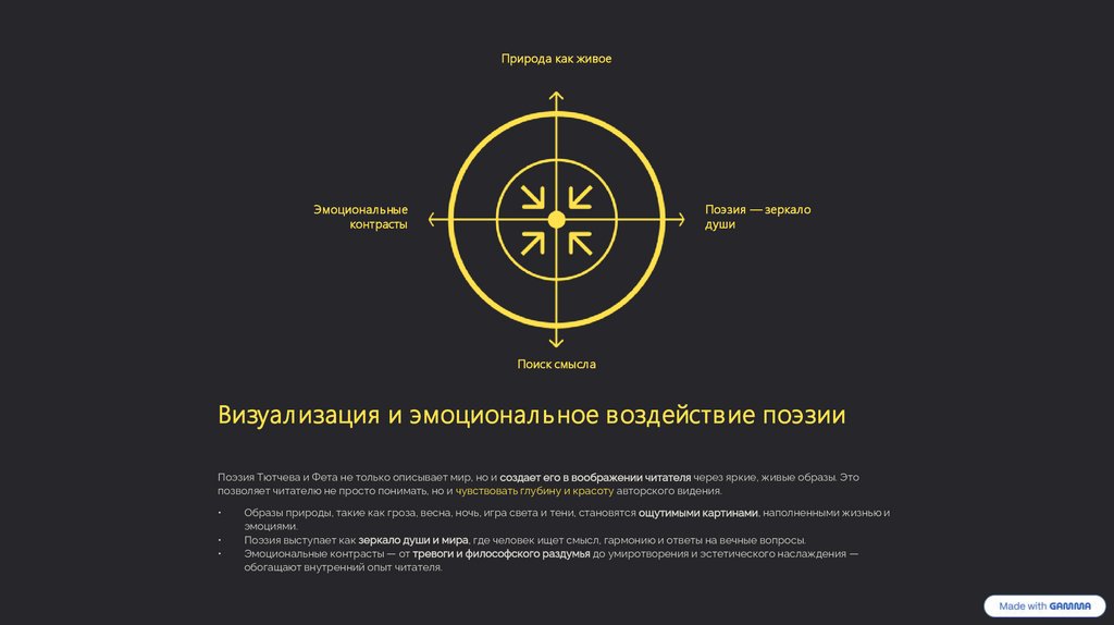 Поэзия выступает как зеркало души и мира, где человек ищет смысл, гармонию и ответы на вечные вопросы.