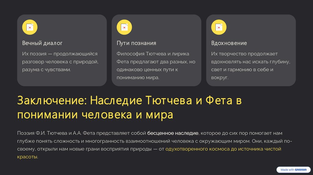 Поэзия Ф.И. Тютчева и А.А. Фета представляет собой бесценное наследие, которое до сих пор помогает нам