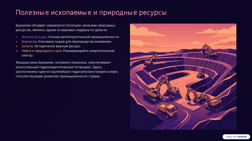 Полезны е ископаемы е и природны е ресурсыБразилия обладает невероятно богатыми запасами природных