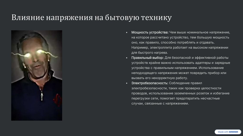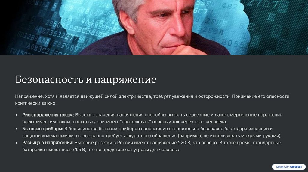 Безопасность и напряжениеНапряжение, хотя и является движущей силой электричества, требует уважения и осторожности. Понимание его опасности