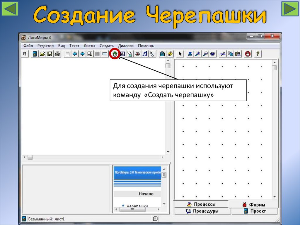 Для создания черепашки используюткоманду «Создать черепашку»