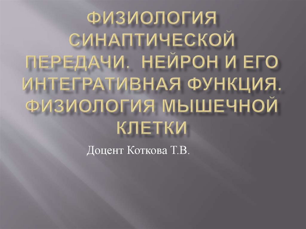 1. Физиология синаптической передачи. Нейрон и его интегративная функция. Физиология мышечной клетки