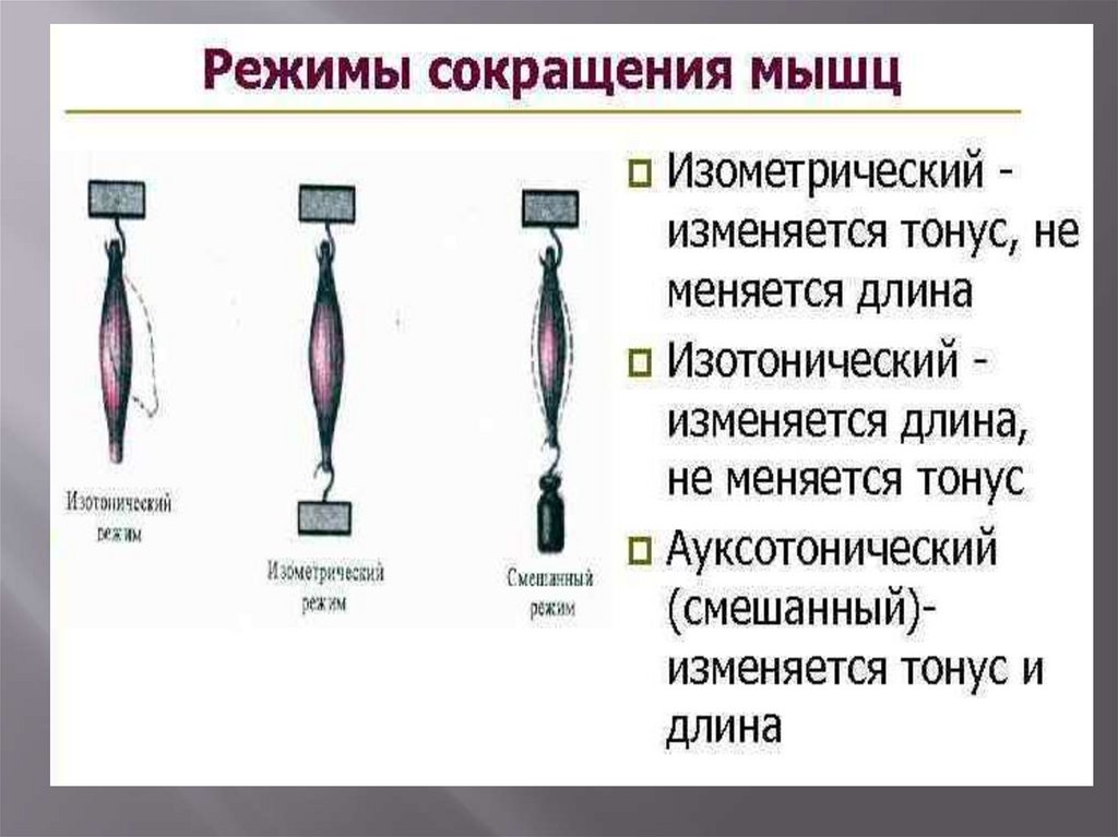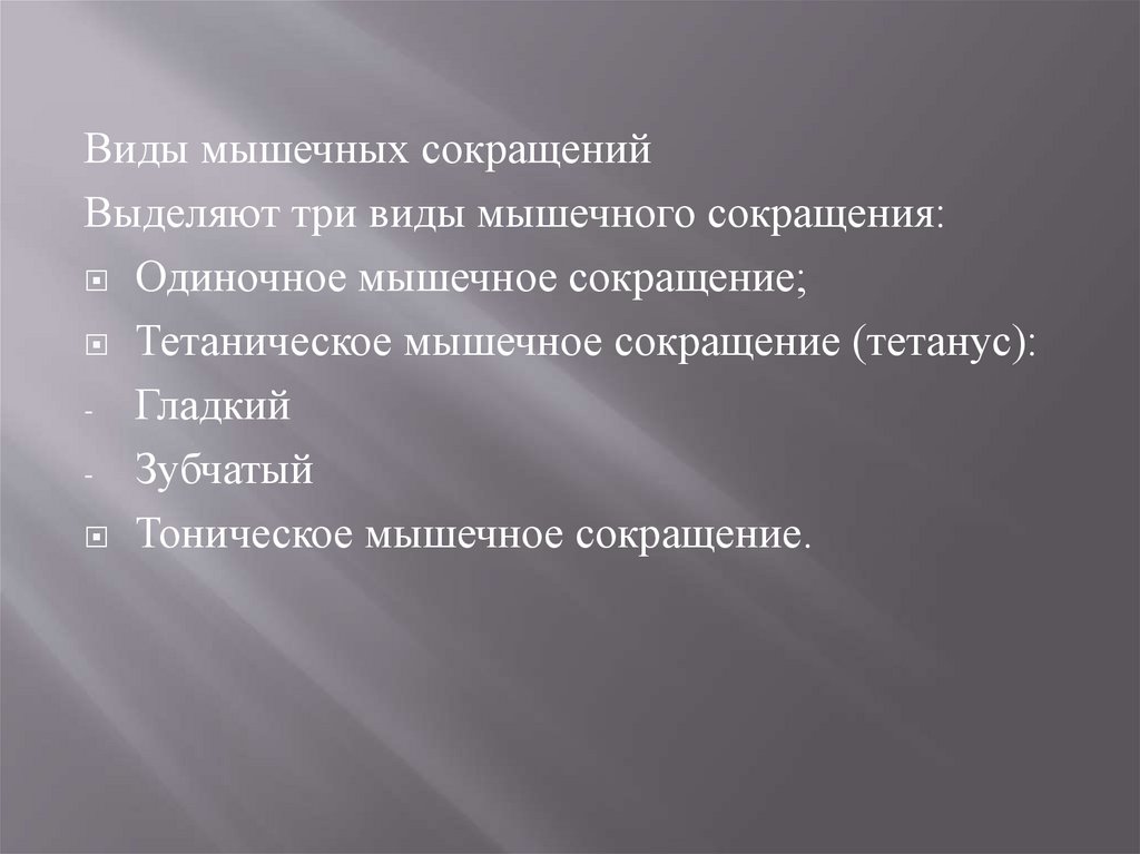 Виды мышечных сокращенийВыделяют три виды мышечного сокращения: