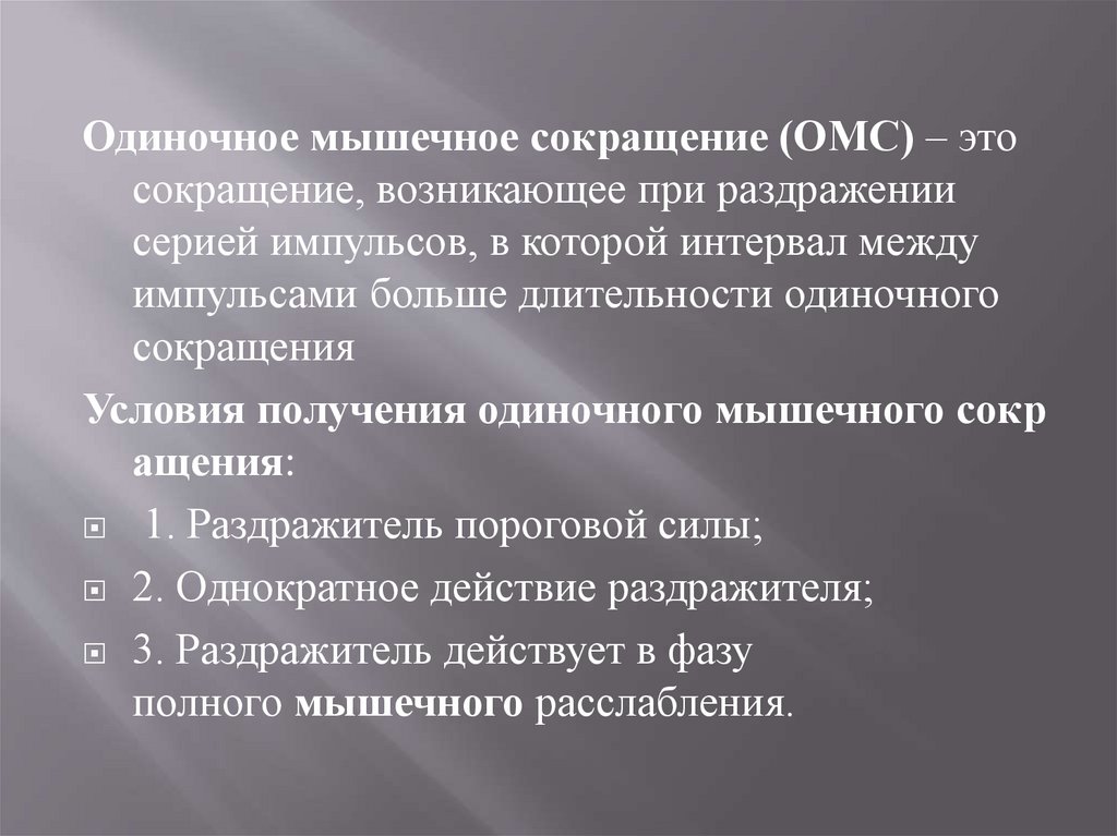 Одиночное мышечное сокращение (ОМС) – этосокращение, возникающее при раздражении