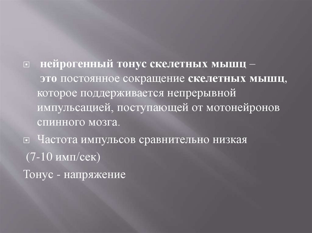 нейрогенный тонус скелетных мышц –это постоянное сокращение скелетных мышц,