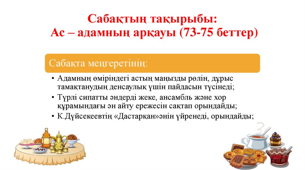1. Сабақтың тақырыбы: Ас – адамның арқауы (73-75 беттер)
