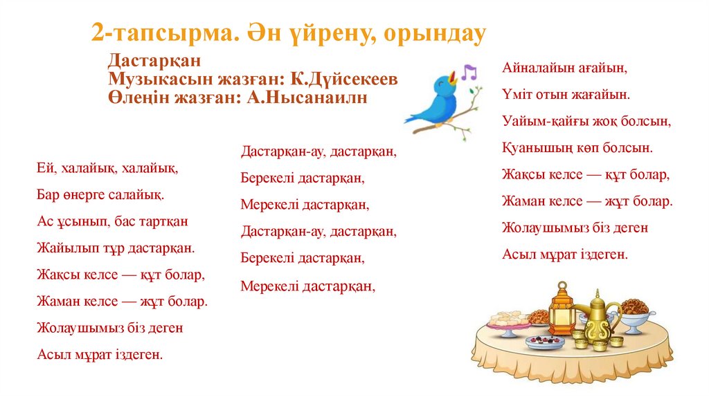 2-тапсырма. Ән үйрену, орындауДастарқан