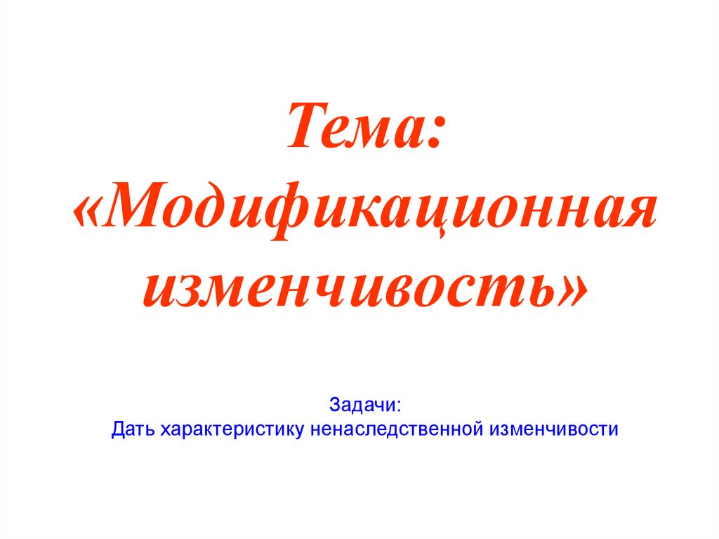 Задачи:Дать характеристику ненаследственной изменчивости