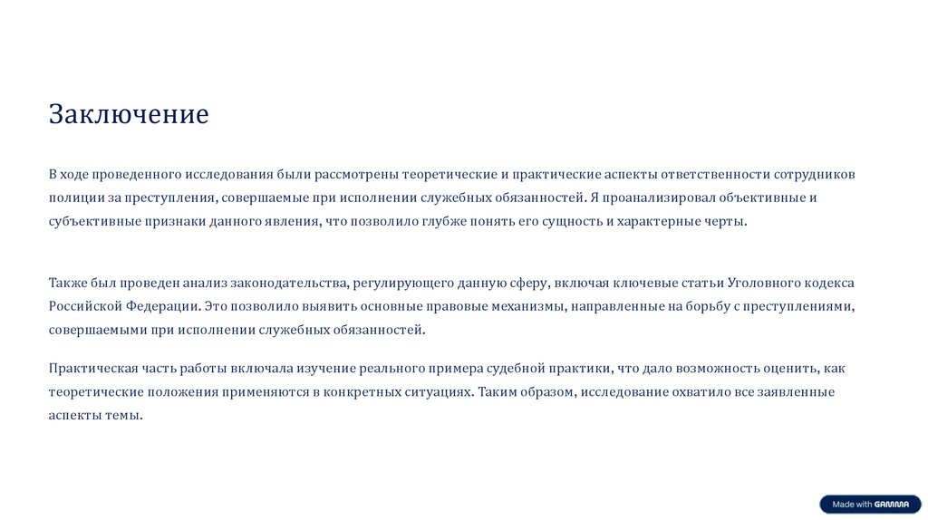 полиции за преступления, совершаемые при исполнении служебных обязанностей. Я проанализировал объективные и