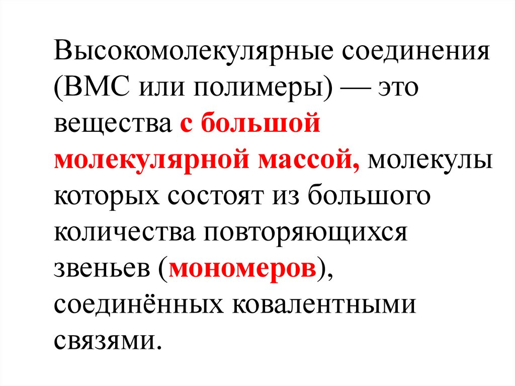 Высокомолекулярные соединения(ВМС или полимеры) — это