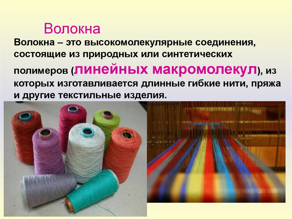 ВолокнаВолокна – это высокомолекулярные соединения,