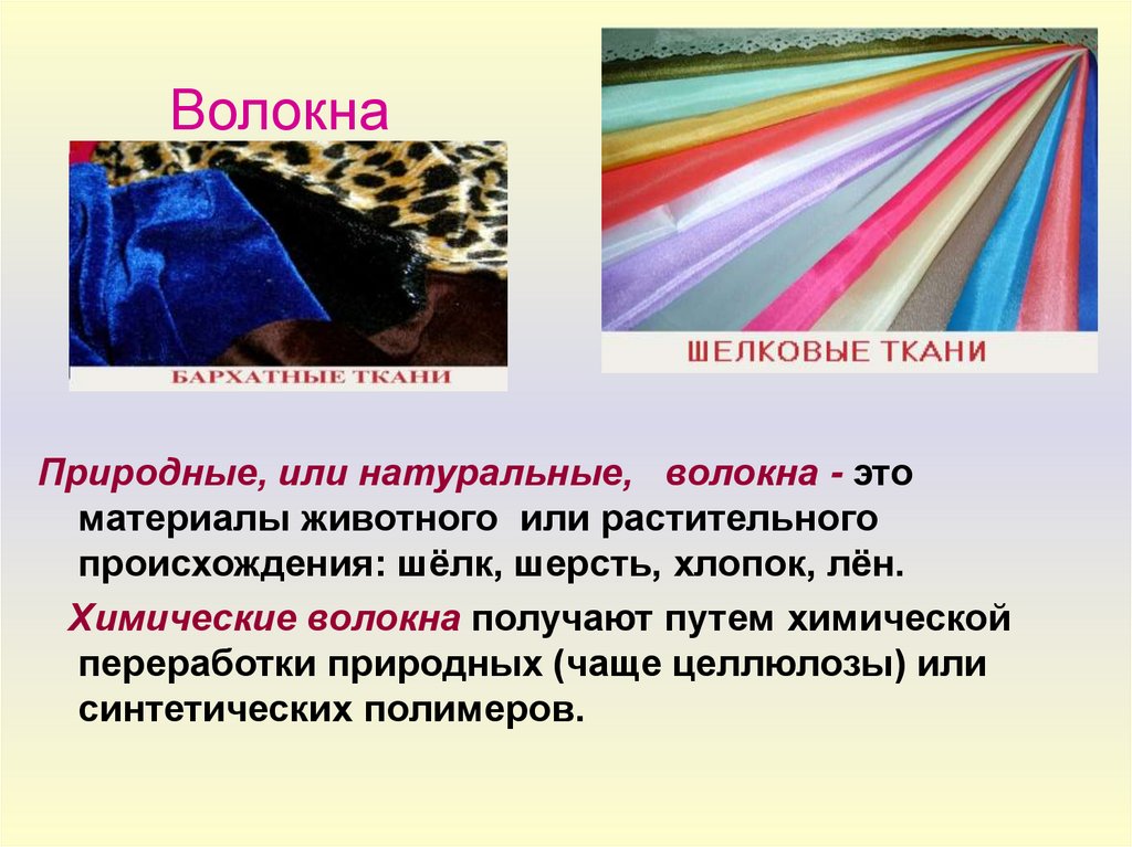 ВолокнаПриродные, или натуральные, волокна - это