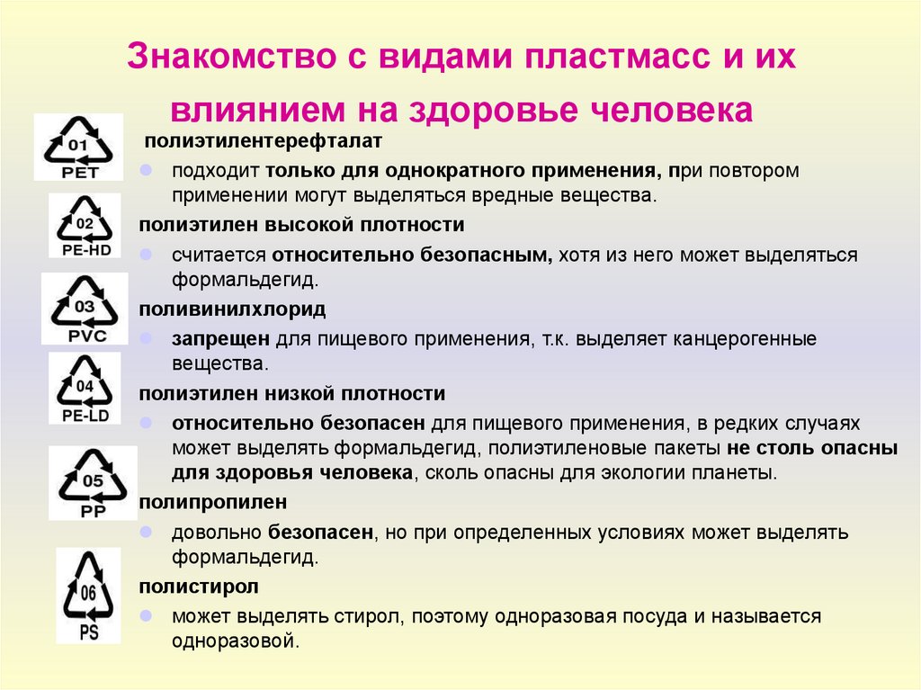 Знакомство с видами пластмасс и ихвлиянием на здоровье человека