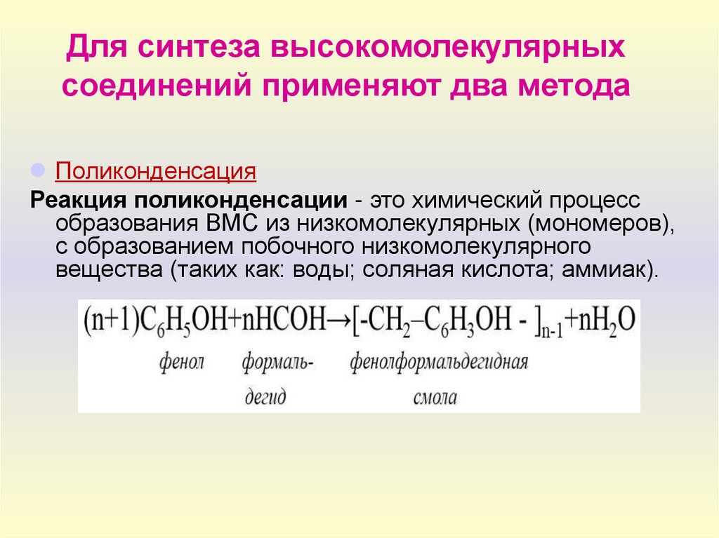 образования ВМС из низкомолекулярных (мономеров),