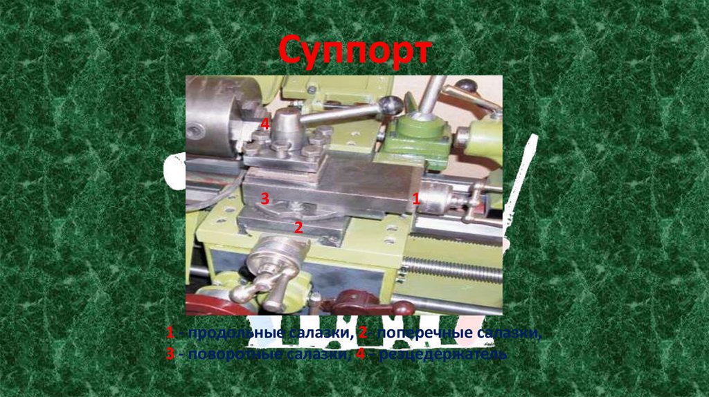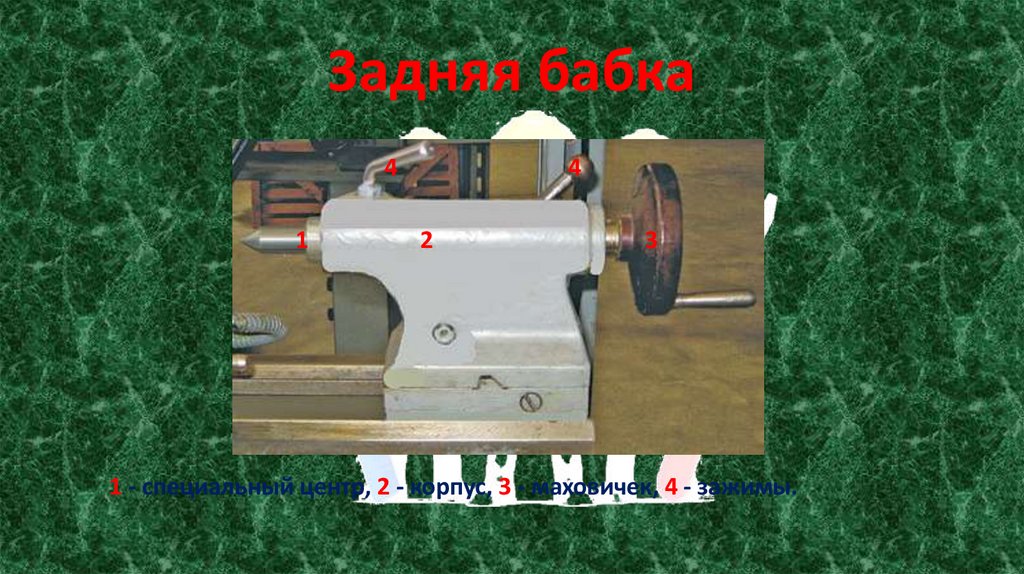 1 - специальный центр, 2 - корпус, 3 - маховичек, 4 - зажимы.
