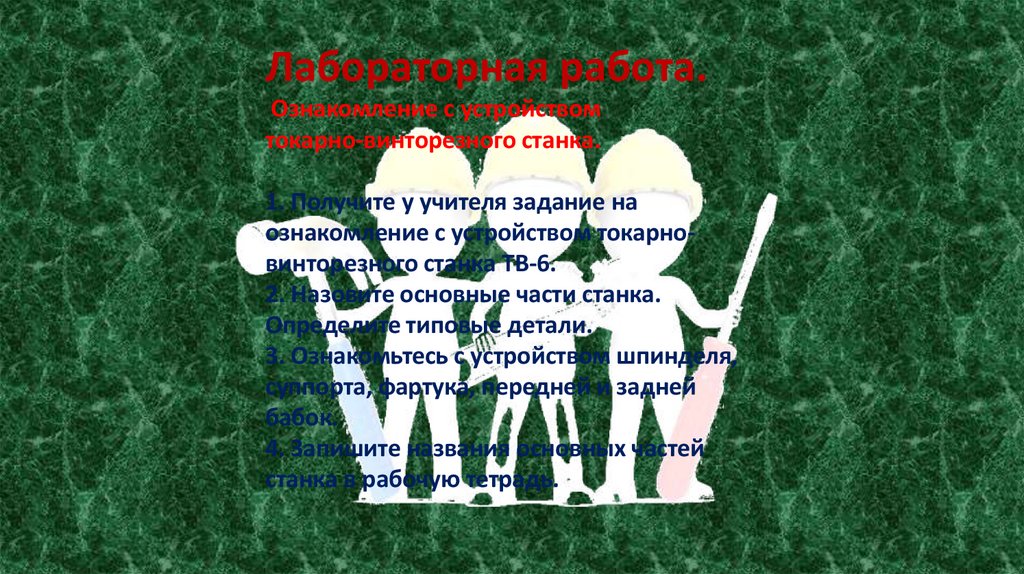 ознакомление с устройством токарновинторезного станка ТВ-6.