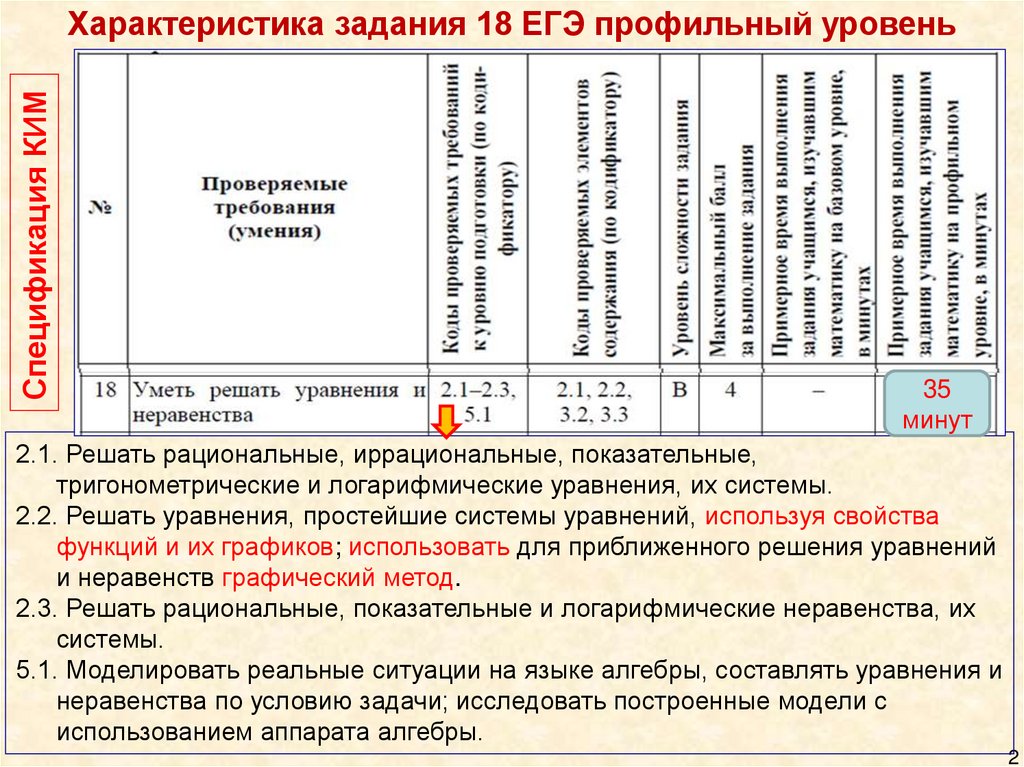 Спецификация КИМХарактеристика задания 18 ЕГЭ профильный уровень