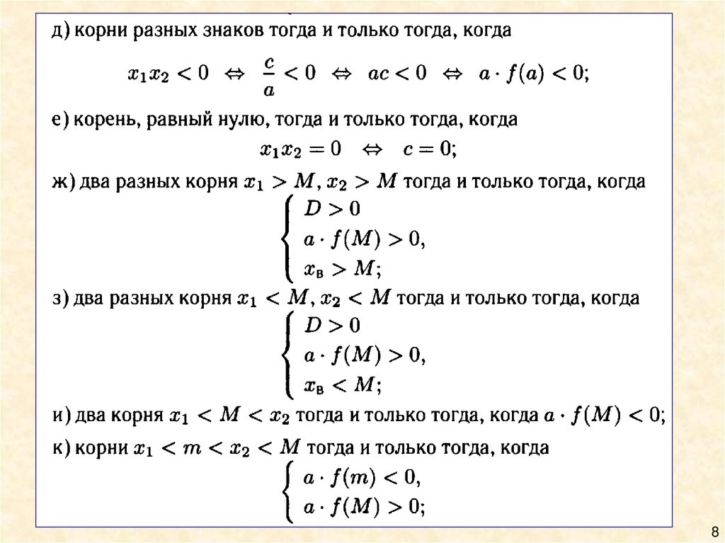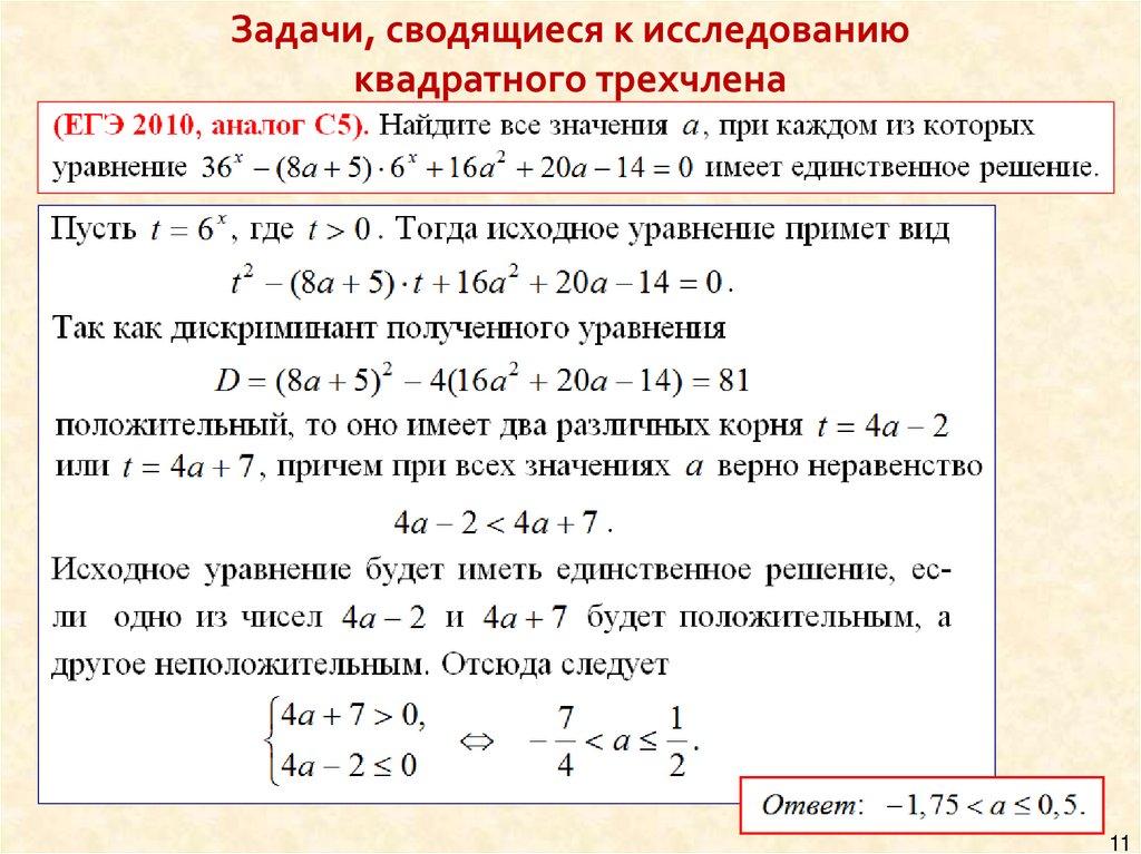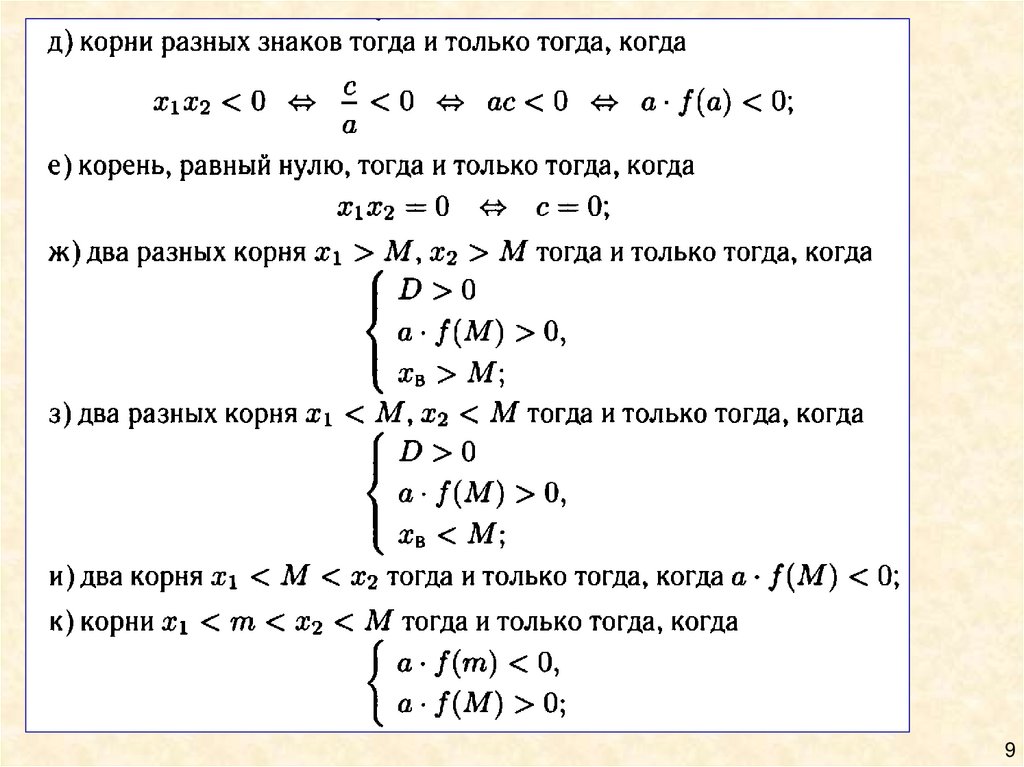 Задачи, сводящиеся к исследованиюквадратного трехчлена