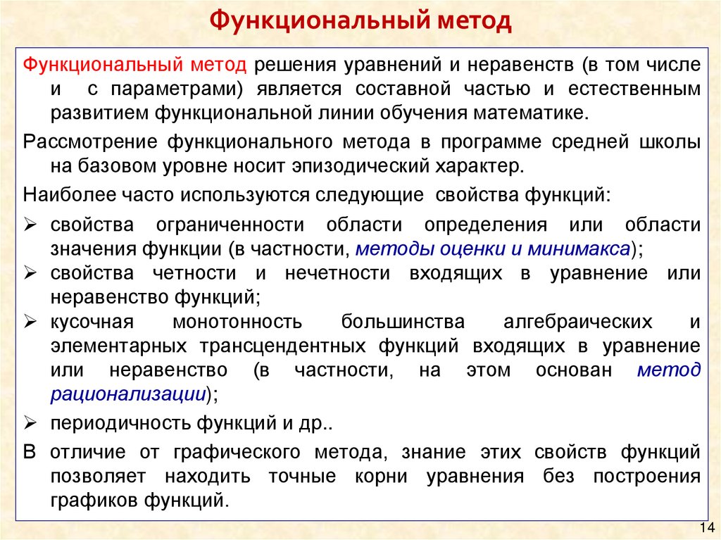Функциональный методФункциональный метод решения уравнений и неравенств (в том числе