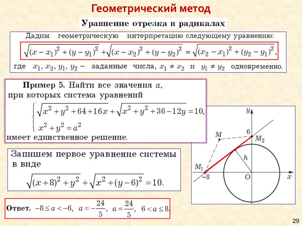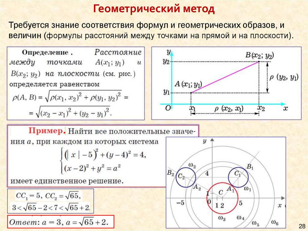 Геометрический методТребуется знание соответствия формул и геометрических образов, и
