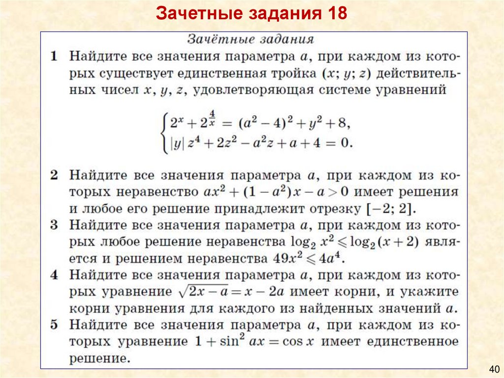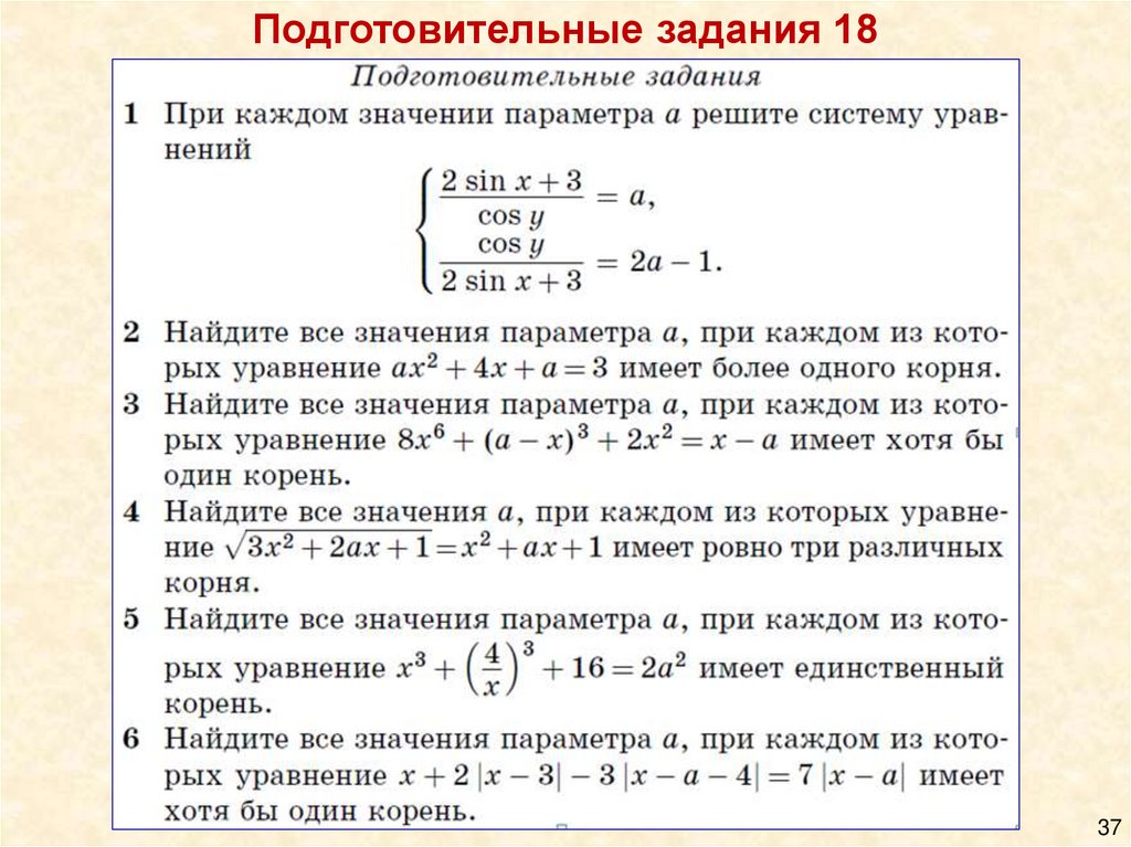 1. Рекомендации по подготовке к выполнению задания №18 (задачи с параметром) ЕГЭ профильного уровня