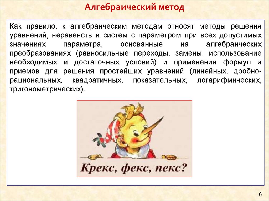 Алгебраический методКак правило, к алгебраическим методам относят методы решения