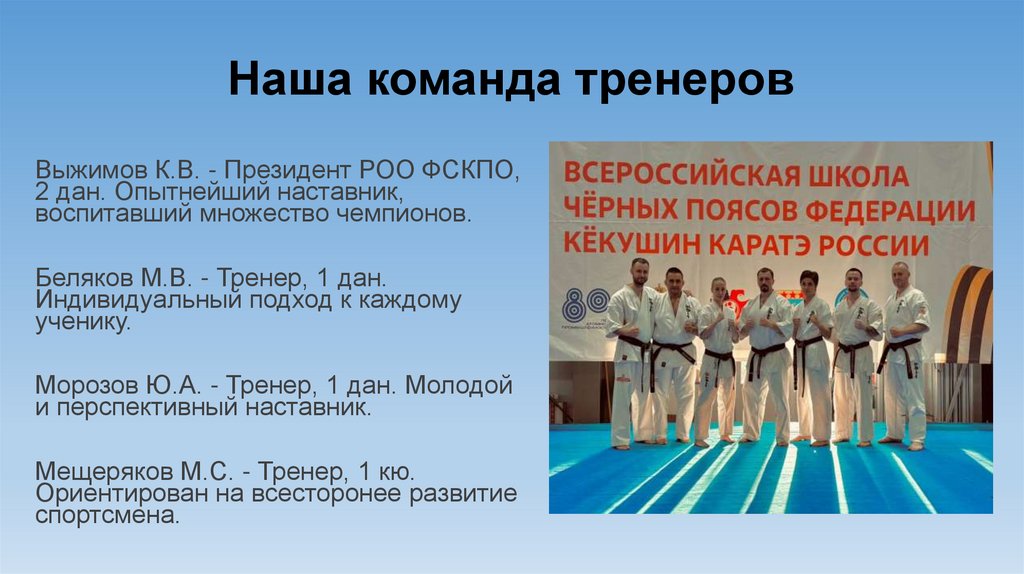 Наша команда тренеровВыжимов К.В. - Президент РОО ФСКПО,