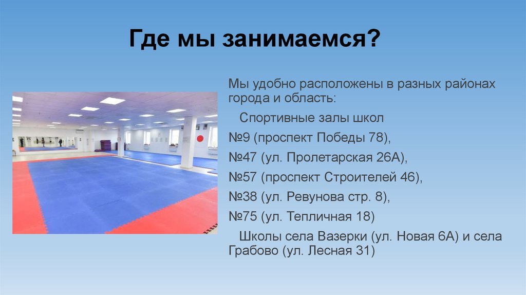 Где мы занимаемся?Мы удобно расположены в разных районах