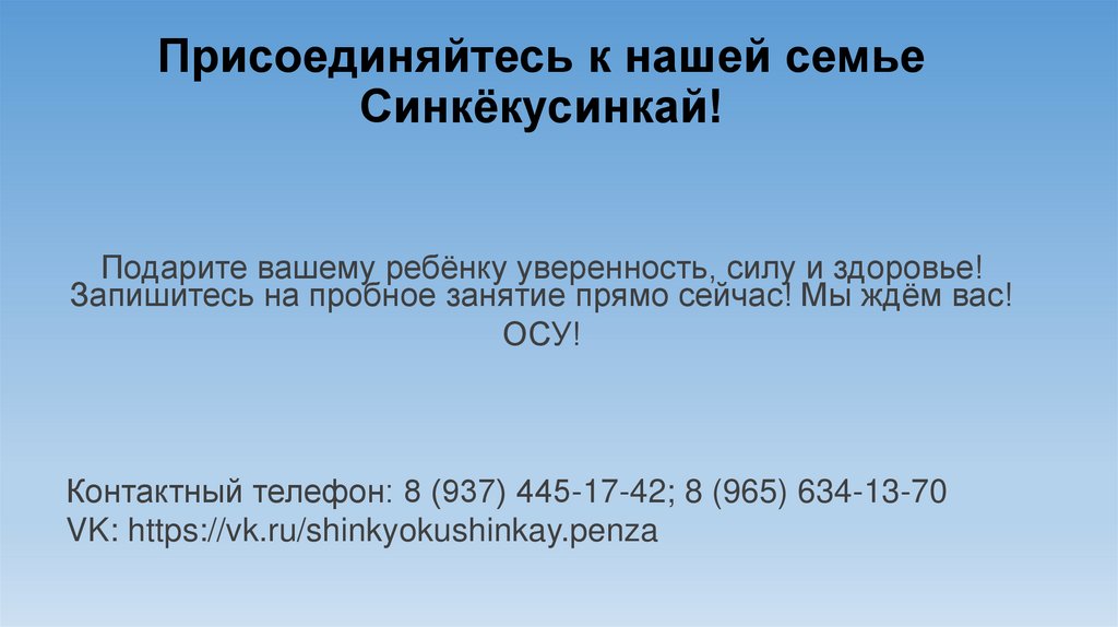 Присоединяйтесь к нашей семьеСинкёкусинкай!