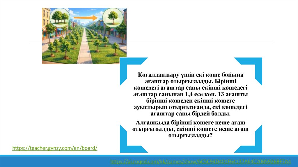 ағаштар санынан 1,4 есе көп. 13 ағашты